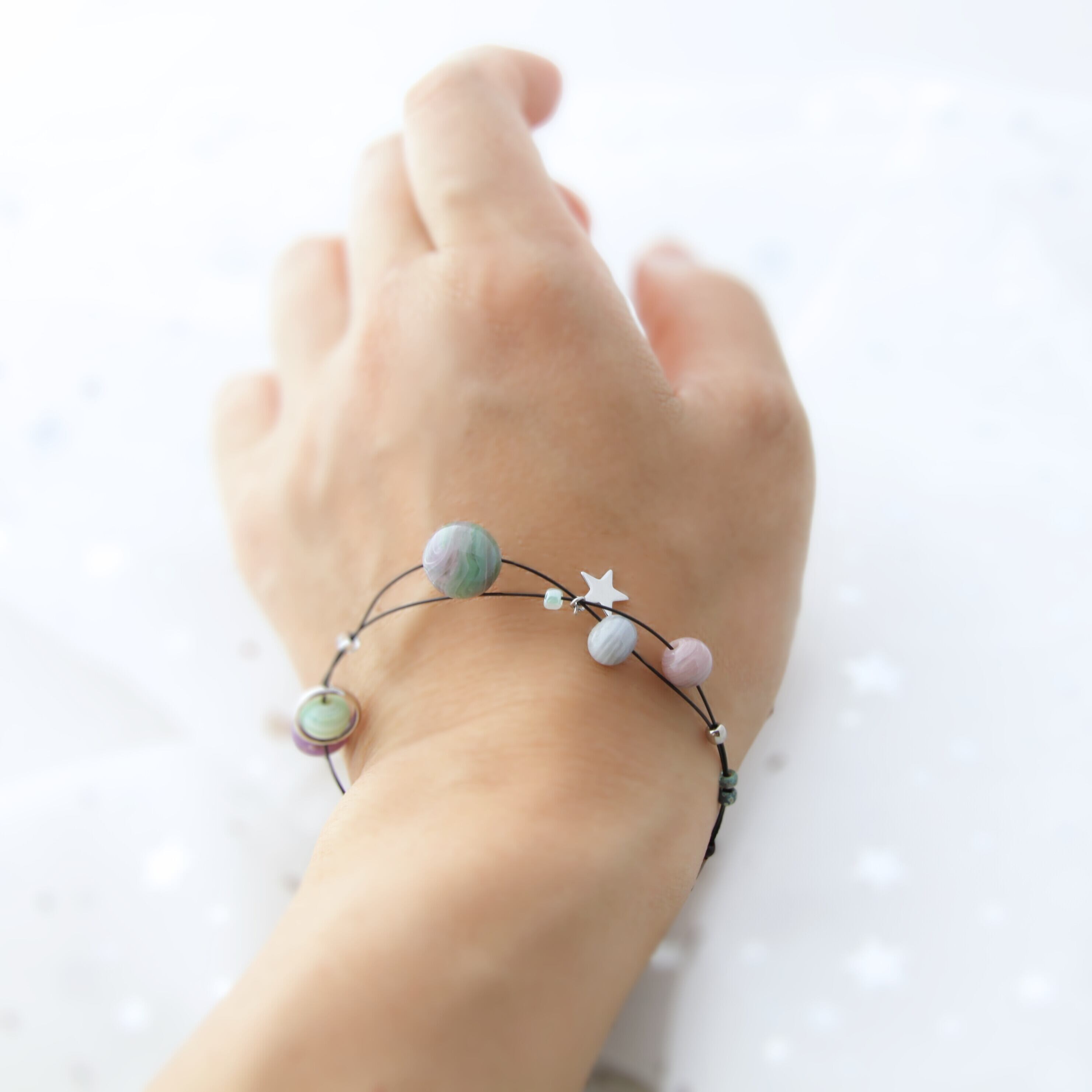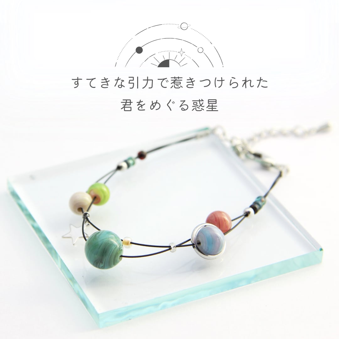 とんぼ玉で作った、惑星をモチーフにしたブレスレットです。