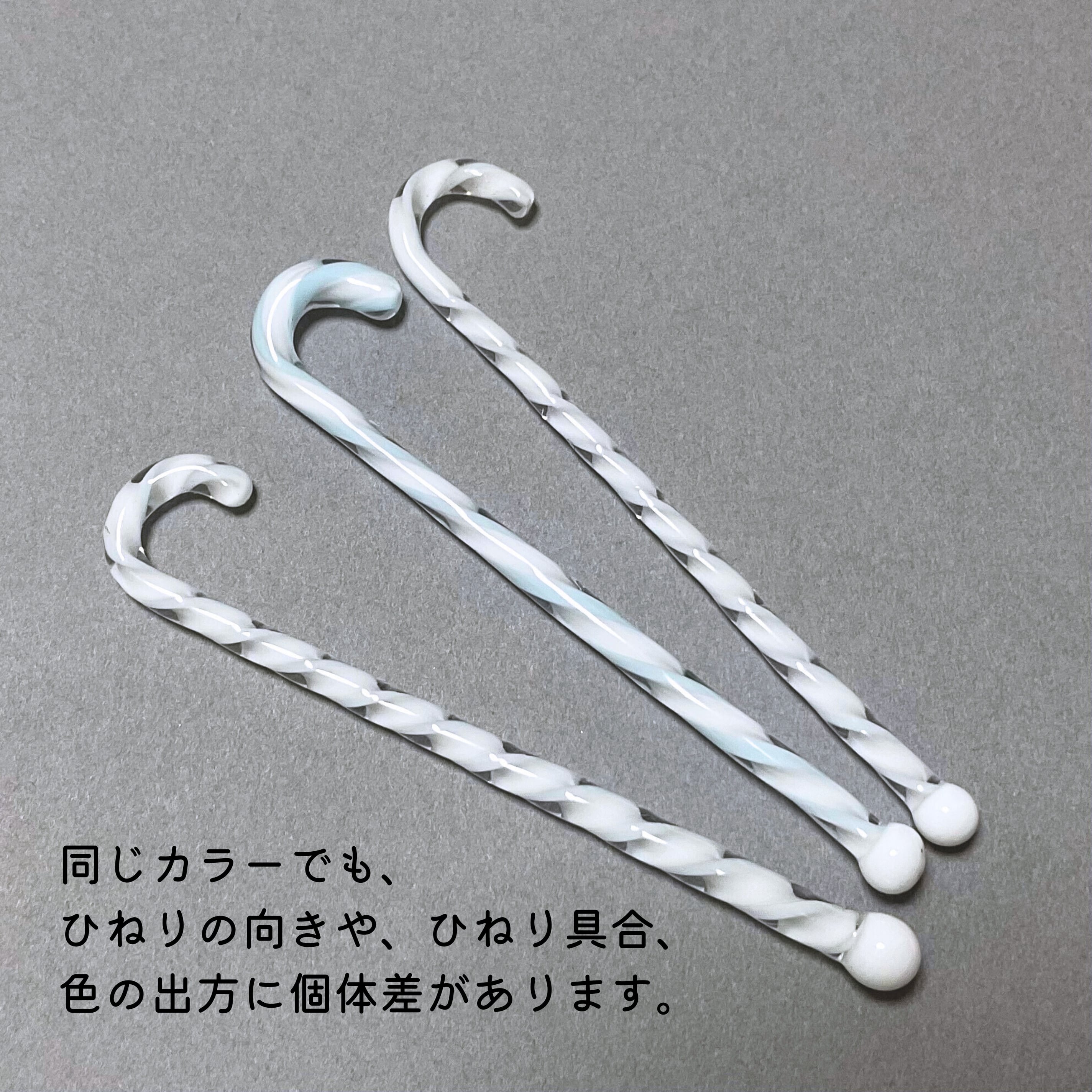 (使用しているガラスの色はそれぞれ同じですが、螺旋の巻き加減や、巻きの向き、色の出方の割合、下端の大きさなどは個体差があります。ご了承くださいませ)