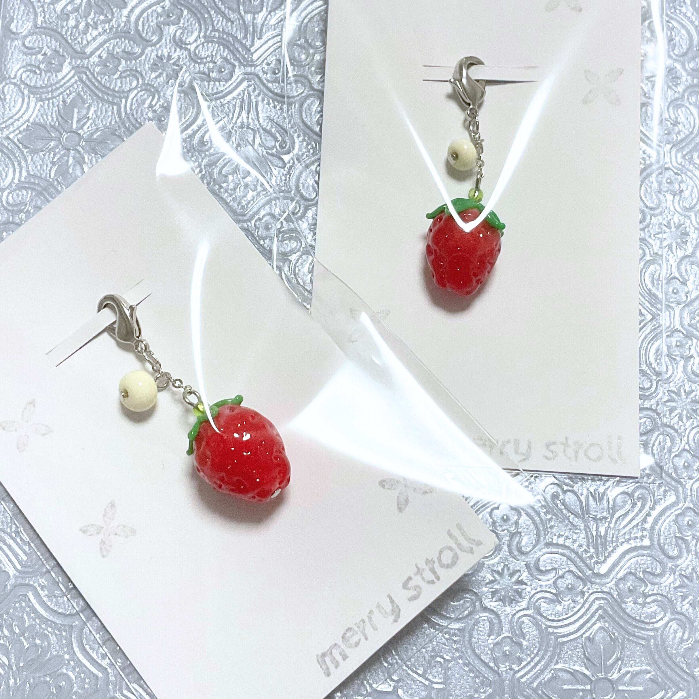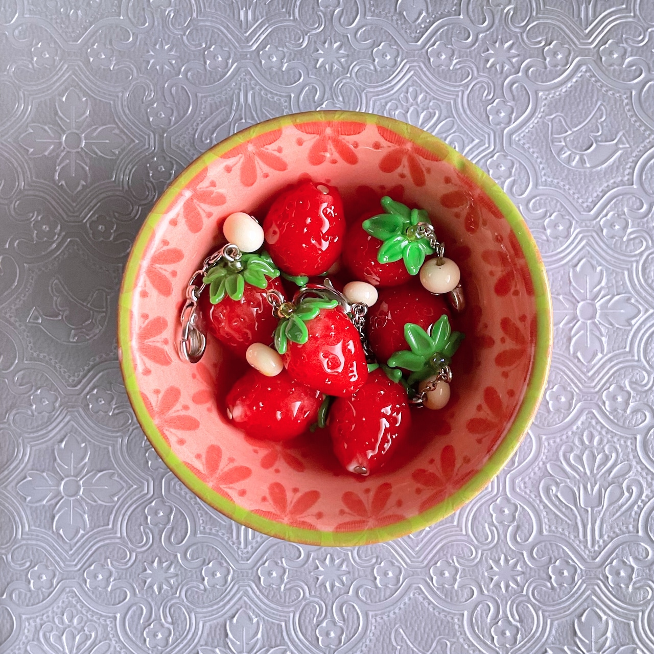 シンプルな、ひと粒のガラスのいちごのチャームです。