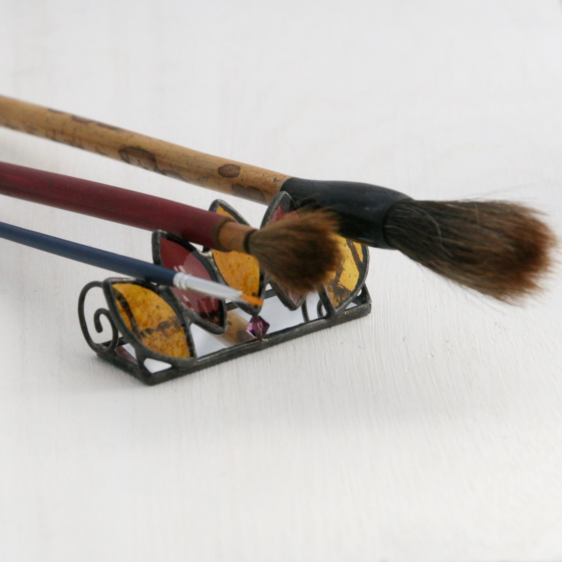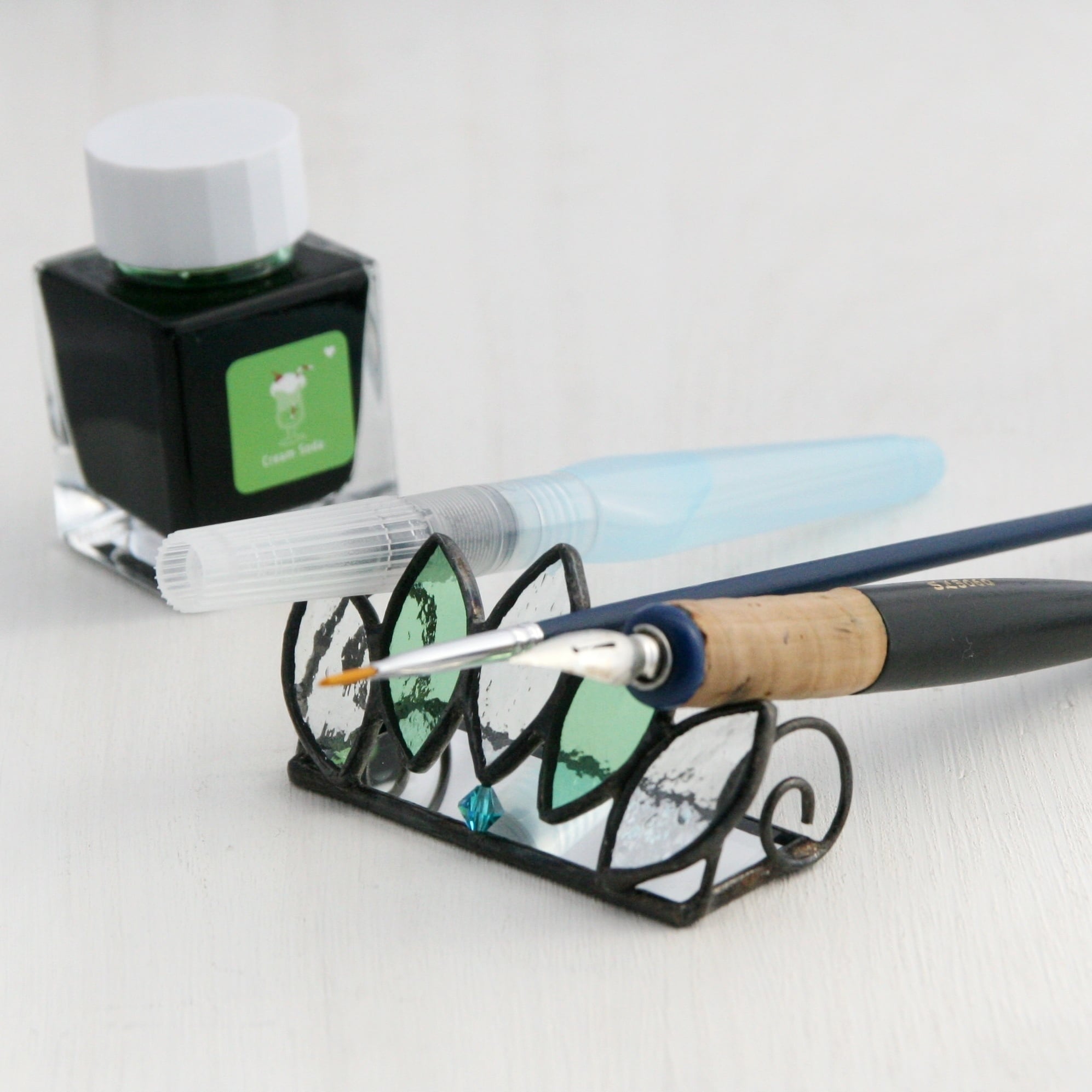 つけペン、筆、鉛筆、万年筆、メイクブラシなどなど…合計4本の筆記具を置くことができます。