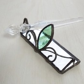 透明な色ガラスを中心に、霜のような模様のグルーチップガラスと組み合わせ、サークレットを模したペンレストを作りました。