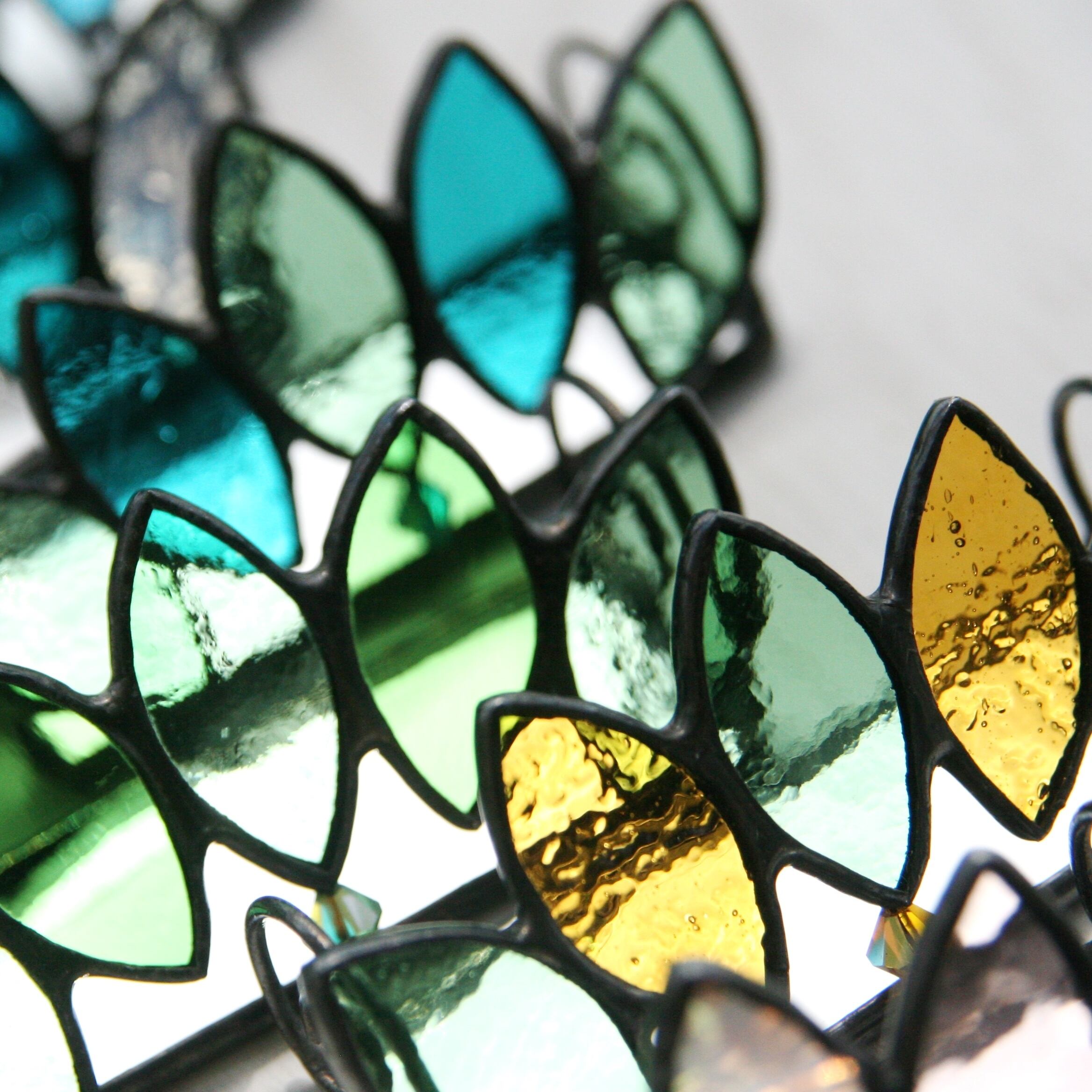 キラキラしたガラスとガラスビーズを組み合わせ、